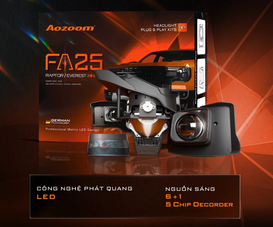Sản phẩm được thiết kế dành riêng cho những dòng xe mang tinh thần chiến binh đường phố như Ford Ranger và Ford Everest thế hệ mới. FA25 không chỉ là một phiên bản nâng cấp ánh sáng, mà còn thể hiện sự đổi mới trong cách tiếp cận: nâng cấp có chọn lọc, tôn trọng cấu trúc nguyên bản và đảm bảo tính ổn định lâu dài.