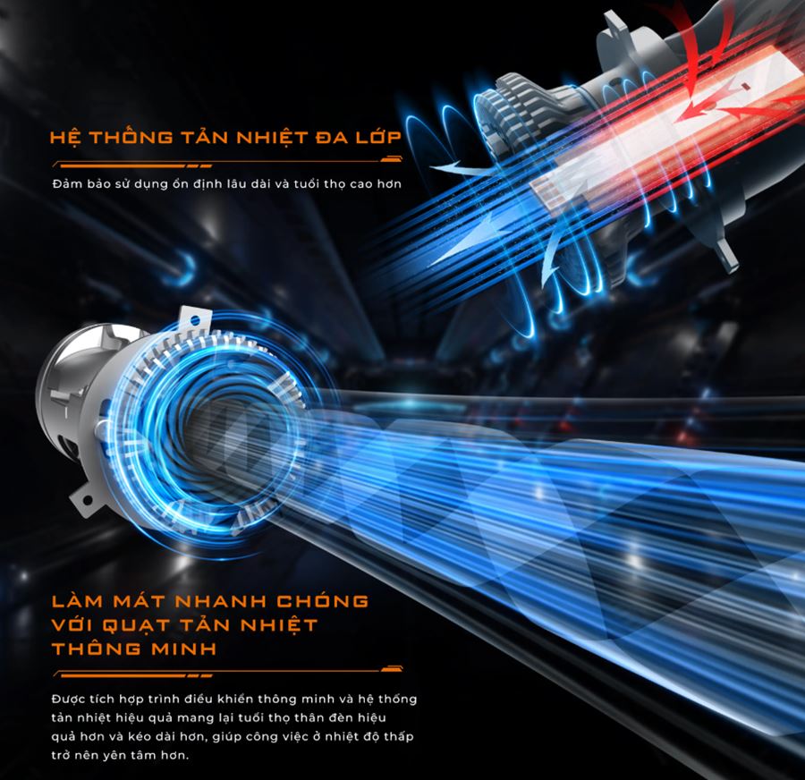 Tản nhiệt đa lớp vận hành ổn định, không gây ồn, giúp đèn hoạt động luôn ổn định