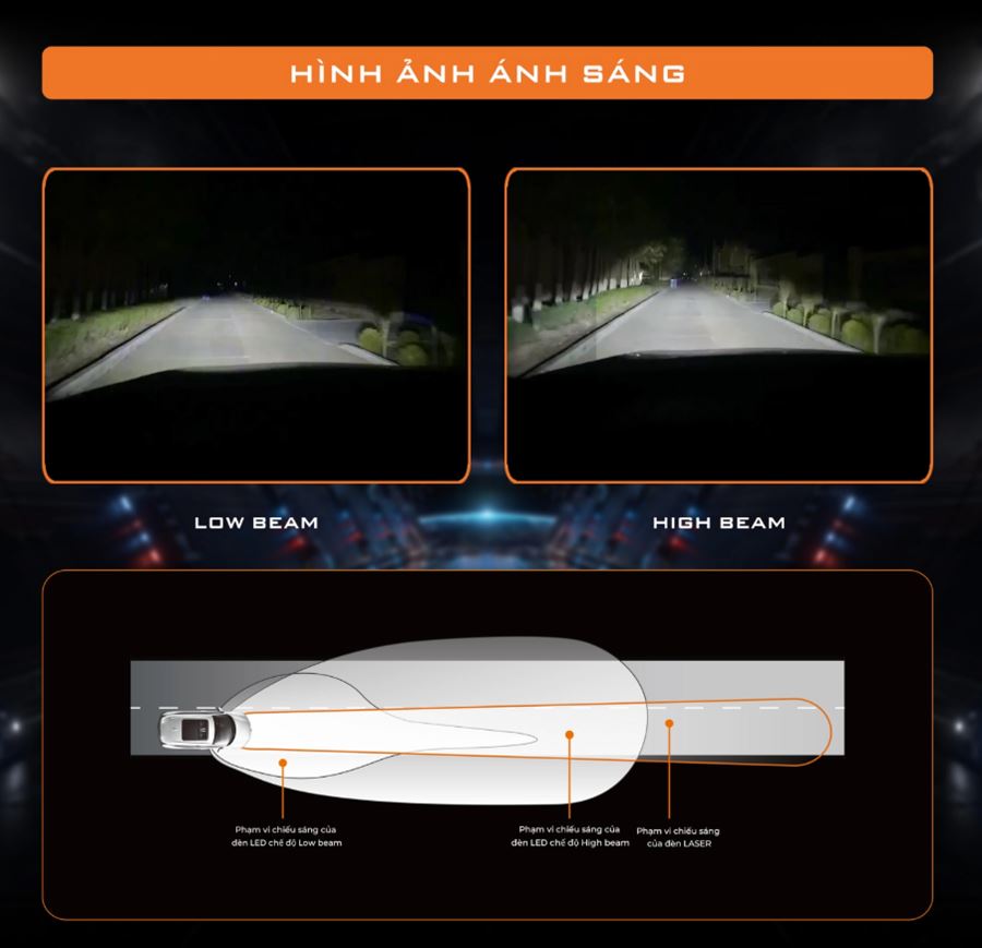 ✅ Ánh sáng pha tập trung, hỗ trợ quan sát xa hơn