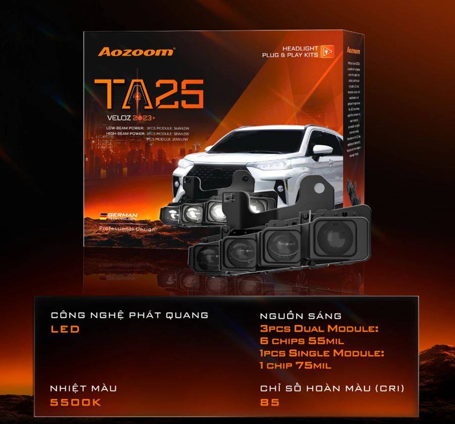 Bi Led TA25 Veloz Cross 2023+ là phiên bản cụm đèn tăng sáng được thiết kế chuyên biệt, giữ trọn bản sắc cho các chiến binh đa dụng Toyota Veloz Cross 2023+.