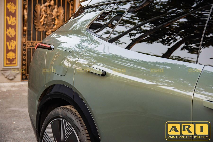 Phim PPF ARI nổi bật với độ trong suốt tuyệt đối, không làm thay đổi màu sắc nguyên bản của xe mà còn tăng thêm độ bóng sâu cho màu xanh lá của Lynk & Co 08. Đặc biệt, dòng phim này có độ bền cực cao, khả năng chống đâm thủng và chống bám bẩn vượt trội nhờ lớp phủ ceramic tích hợp trên bề mặt phim.