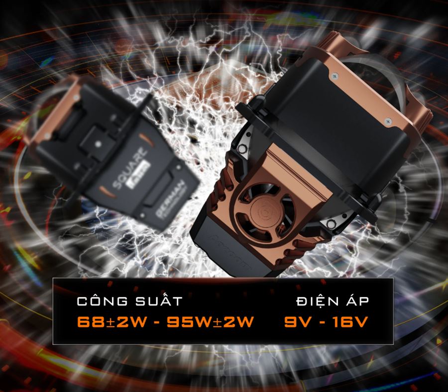 Đột phá công nghệ chiếu sáng với 2 diode LASER JAPAN trực tiếp trên mặt lens vuông mang đến khả năng chiếu xa vượt bậc