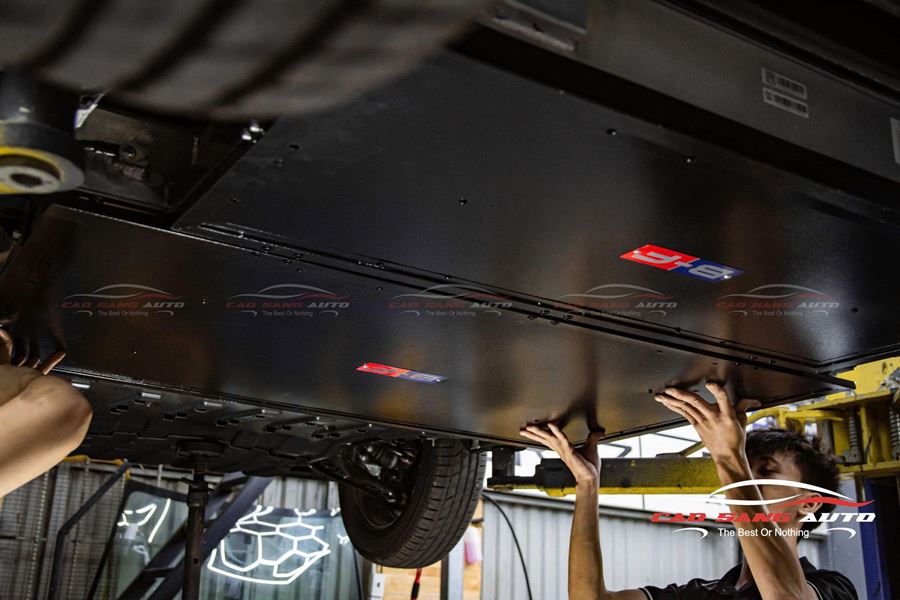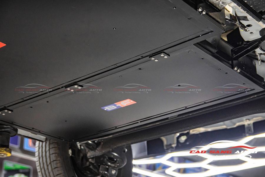Khi hoàn thiện, tấm ốp pin nằm gọn gàng dưới gầm, không gây cản trở khả năng vận hành hay ảnh hưởng đến khoảng sáng gầm xe.