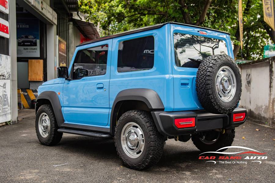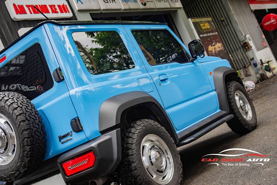 Màu xanh bóng không chỉ mang lại vẻ ngoài bắt mắt, mà còn phản chiếu ánh sáng tạo hiệu ứng sang trọng và tinh tế. Khi chiếc Suzuki Jummy được wrap xanh bóng, toàn bộ ngoại thất trở nên ấn tượng hơn, thu hút ánh nhìn ngay từ lần đầu tiên.